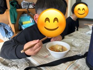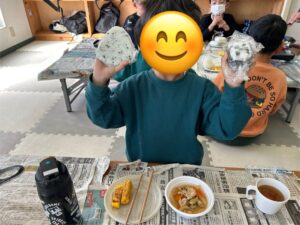 温かい豚汁、手作りのおにぎりみんなでおいしくいただきました😋